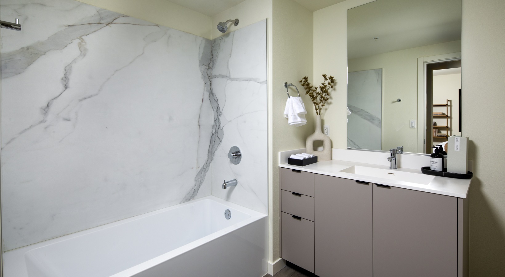 Level by level, The Monroe has ways of elevating your every day. Enjoy the big picture with each tone and texture, carefully curated, from exposed concrete and wood slat elements to towering date palms and birds of paradise.